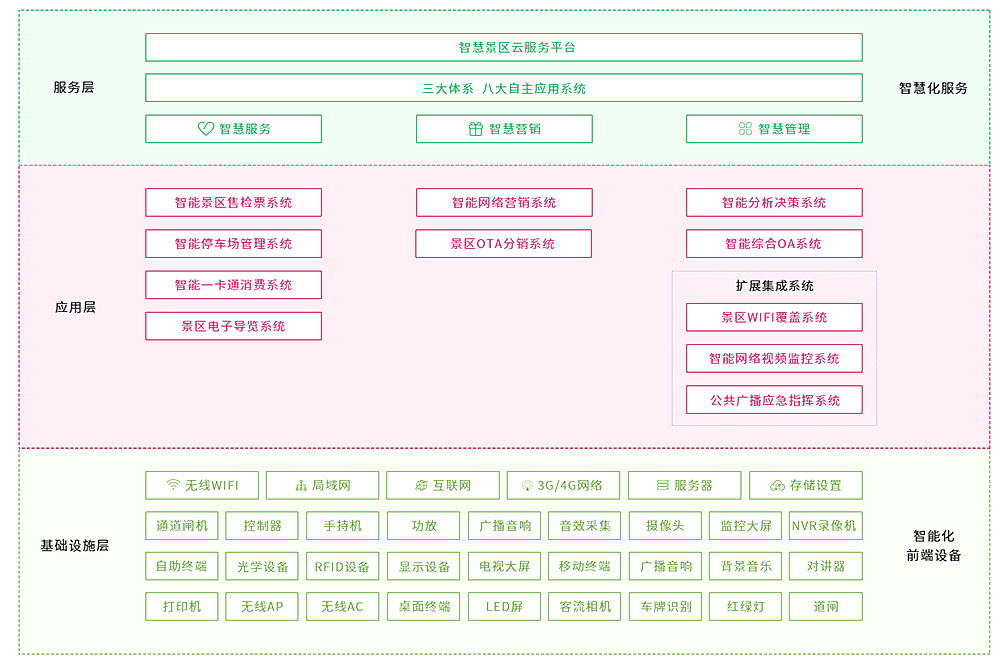 集聚地图一键游、多端小程序多游客流量入口,构建景区安防及公共卫生服务等数字化基础设施,为景区全面洞察提供全方位一体化解决方案。